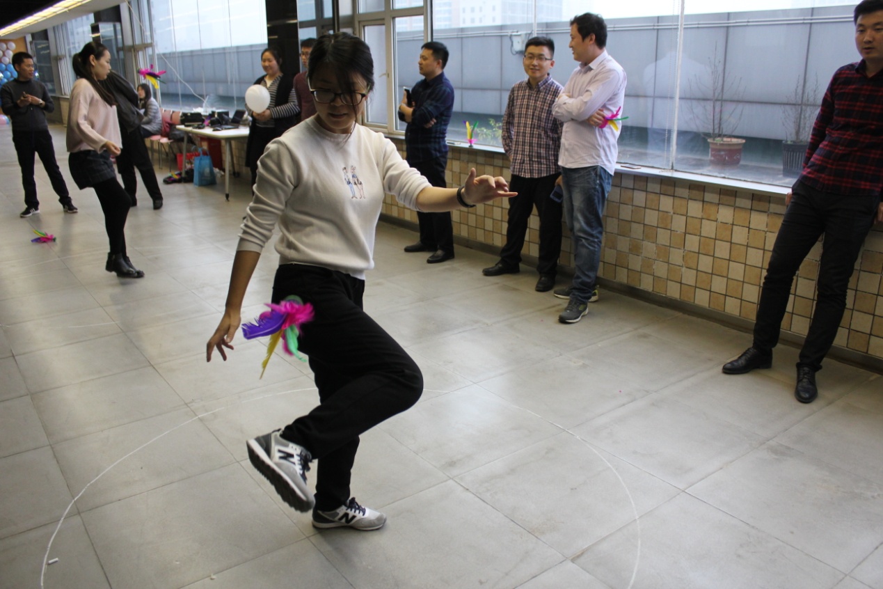 本次活動(dòng)突出了運(yùn)動(dòng)性與趣味性,主要包括踢毽子、齊心協(xié)力運(yùn)氣球、夾黃豆、蘿卜蹲、搶凳子等項(xiàng)目。活動(dòng)中,選手們精神飽滿、勇于拼搏、奮力爭先,圍觀的員工更是熱情滿滿,為選手們鼓勁加油,展現(xiàn)了國盛公司員工積極向上、健康快樂的精神風(fēng)貌。