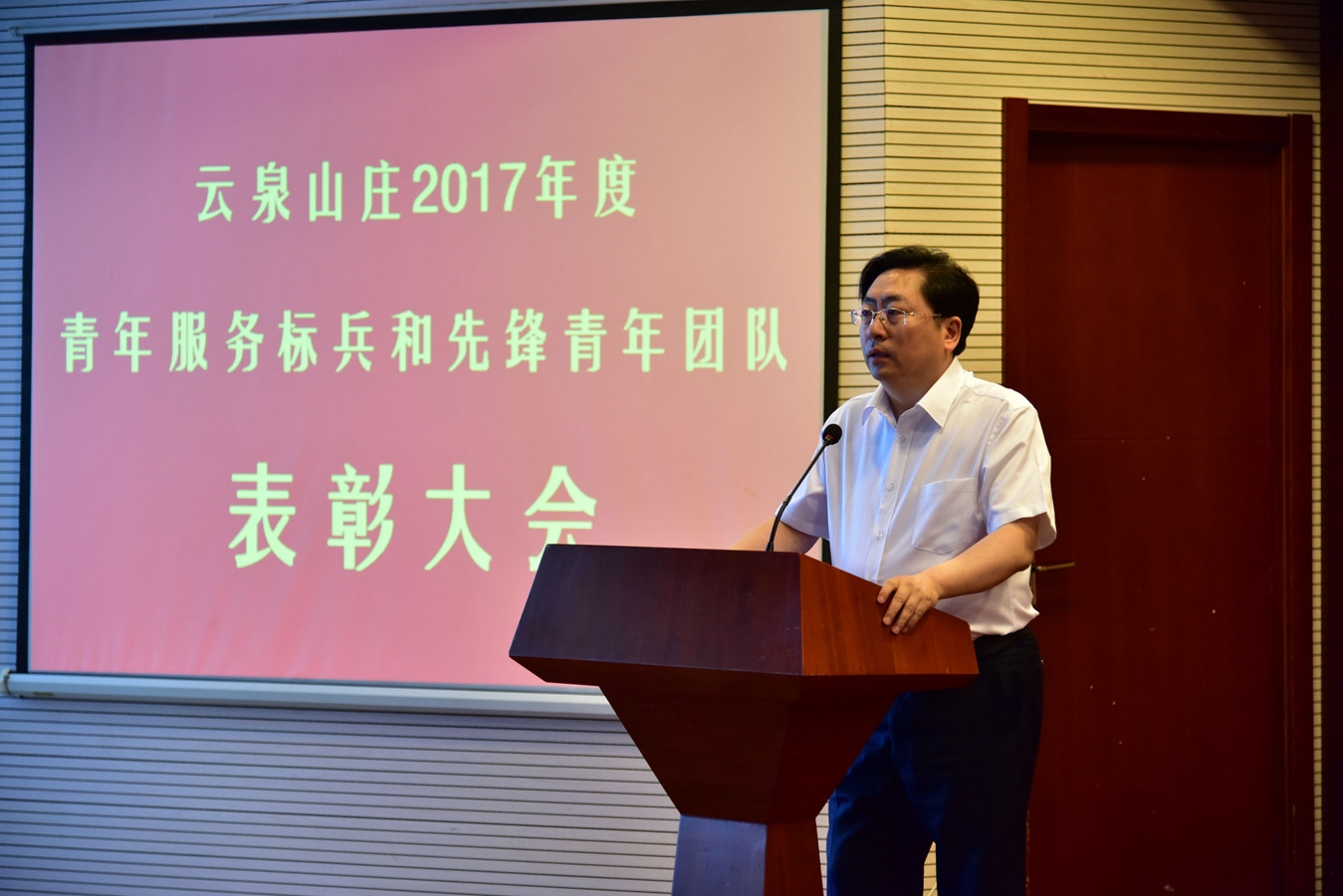 5月27日下午,云泉山莊召開2017年度青年服務(wù)標(biāo)兵和先鋒青年團(tuán)隊表彰大會,楊國華副總經(jīng)理宣讀表彰決定,李中亞總經(jīng)理為獲獎員工頒發(fā)證書。