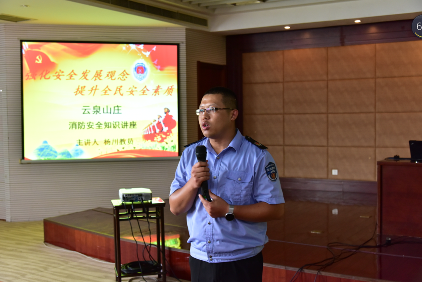 根據(jù)《市安全生產(chǎn)委員會關(guān)于開展全市安全生產(chǎn)大檢查的通知》以及國盛公司安全管理要求,為進一步提高員工的消防安全意識,增強防火救火能力,8月14日下午,云泉山莊特邀徐州市安民防火中心楊川教員為全體員工開展消防安全知識培訓。